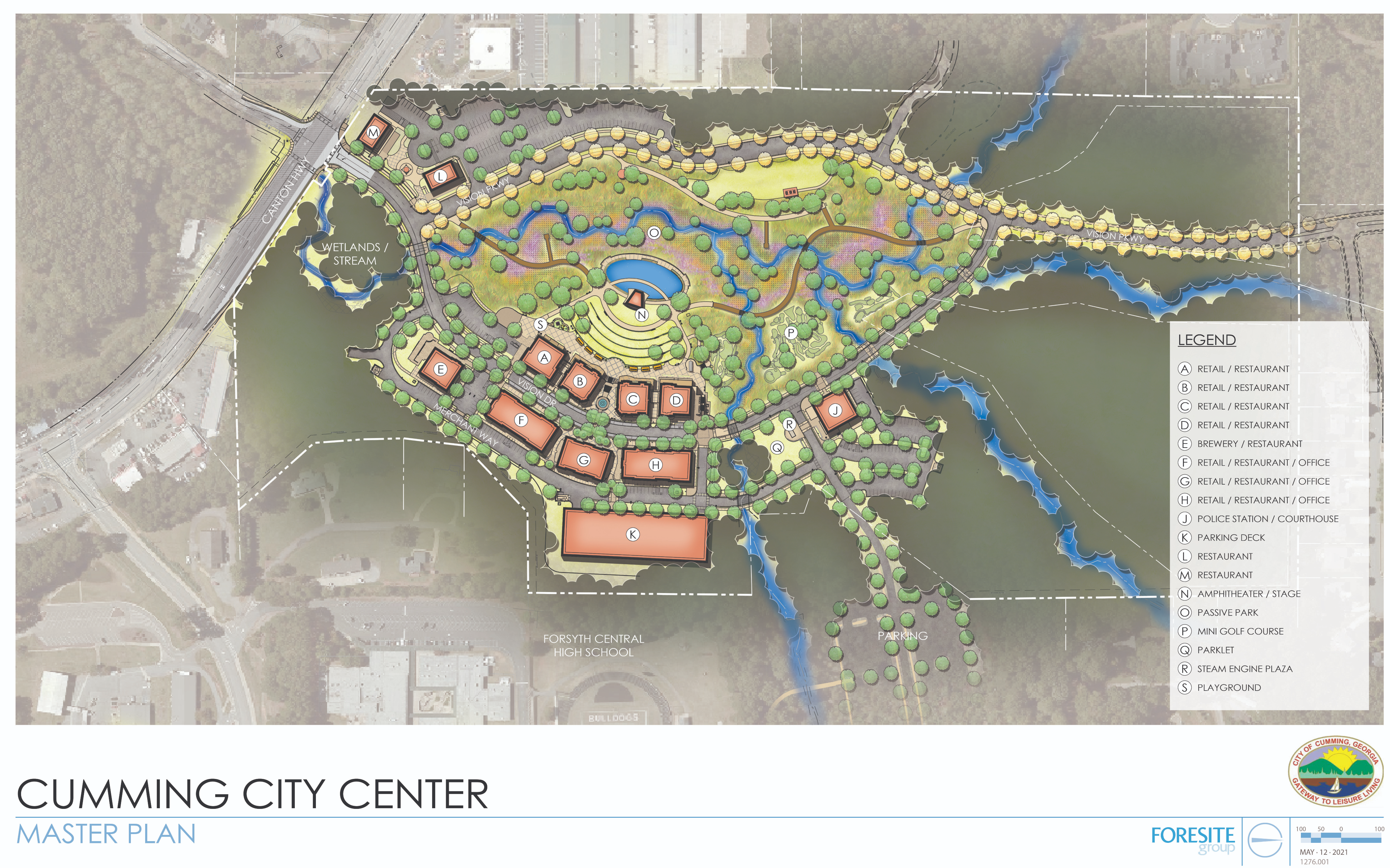 Situated on approximately 75 acres between Canton Highway and Sawnee Drive to the west of downtown Cumming and behind Forsyth Central High School, the Cumming City Center will offer a beautiful gathering place for our community featuring local shops, restaurants, the Lou Sobh Amphitheater, green space, trails and more! For the most up-to-date information on the Cumming City Center, be sure to like and follow the City Center on Facebook and Instagram, both @cummingcitycenter. Check out the City Center website at www.cummingcitycenter.com! The City Center also has it’s own monthly E-Newsletter, the Bulletin Board! Click here to subscribe!